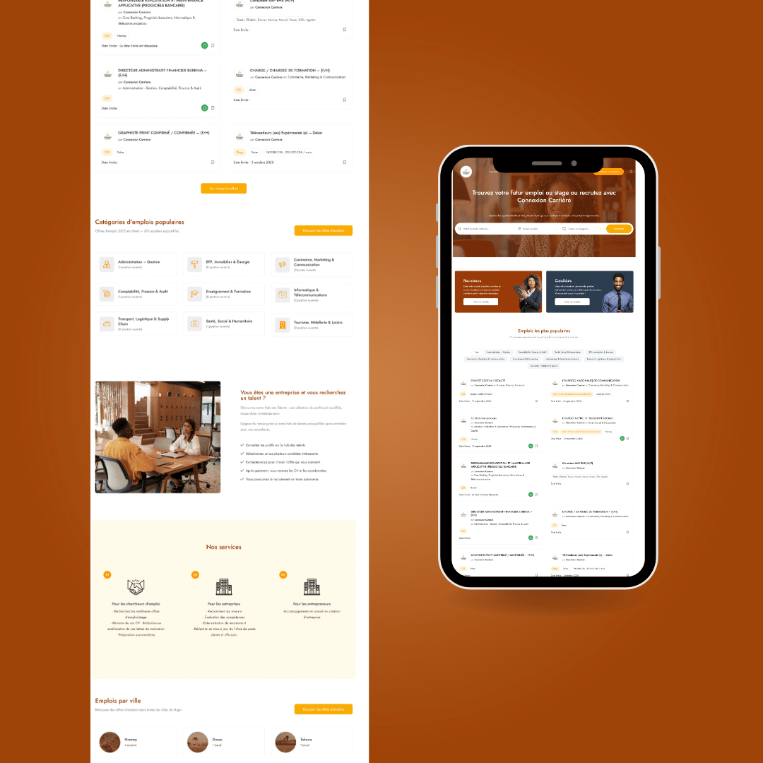Nous avons eu l’opportunité de travailler sur Connexion Carrière, une plateforme d’emploi innovante destinée au marché nigérien.
